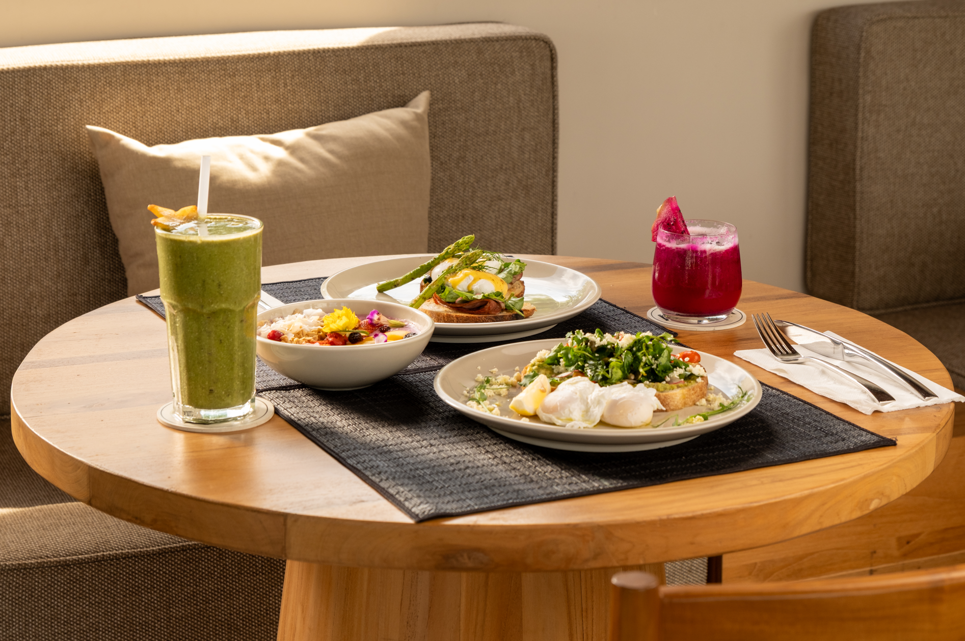 From light, restorative salads and nutrient-packed power bowls to innovative takes on local and international favorites, the all-day menu emphasizes clean eating, vibrant flavors, and beautiful presentation. Each dish is a testament to our commitment to making healthy food exciting and accessible.