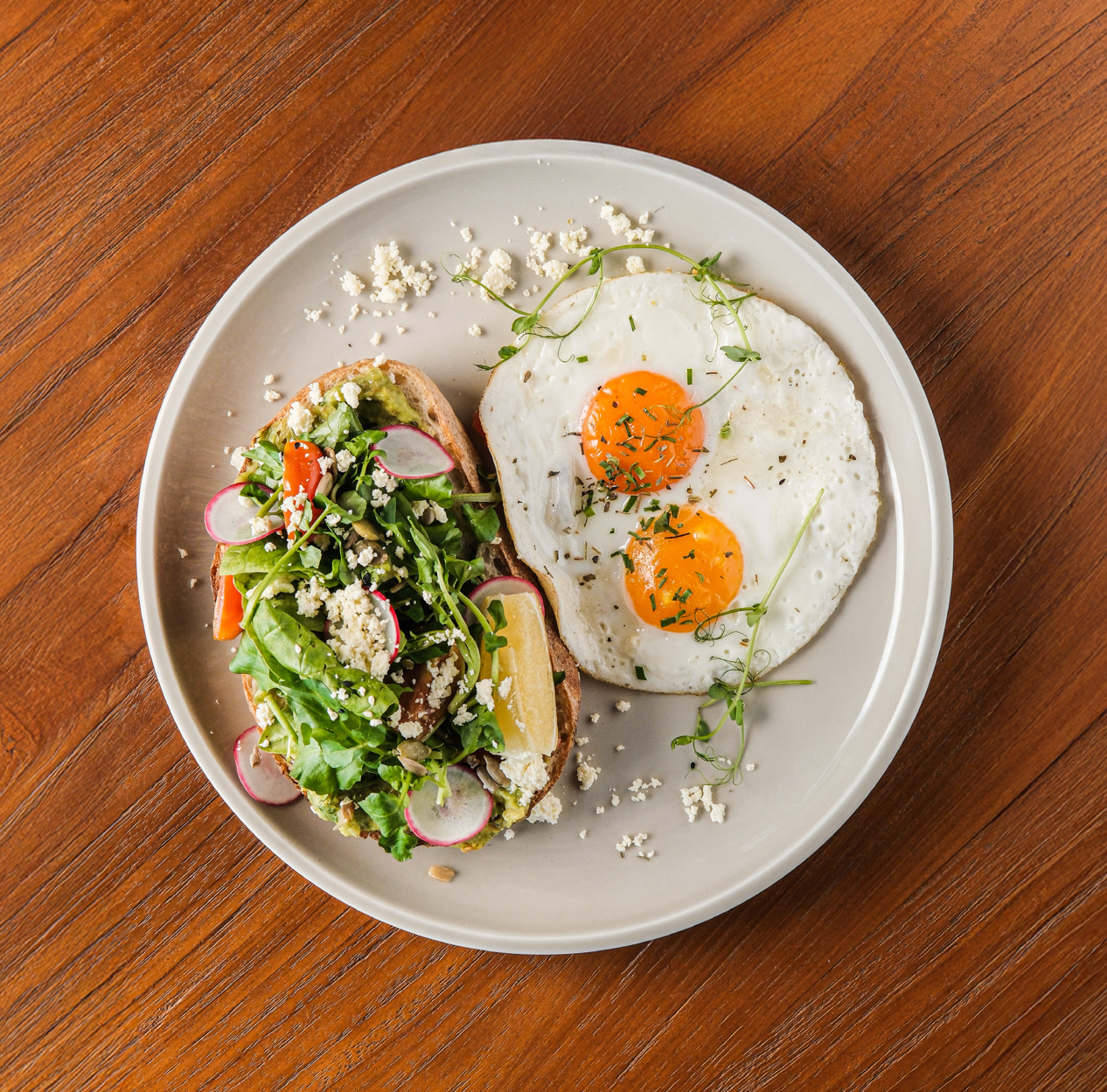 Our all-day menu is a showcase of the Head Chef's healthy and tasty fusion creations. It features a carefully curated selection of lunch and dinner options that cater to diverse dietary needs, including vegetarian, vegan, and gluten-free choices, without ever compromising on flavor.
