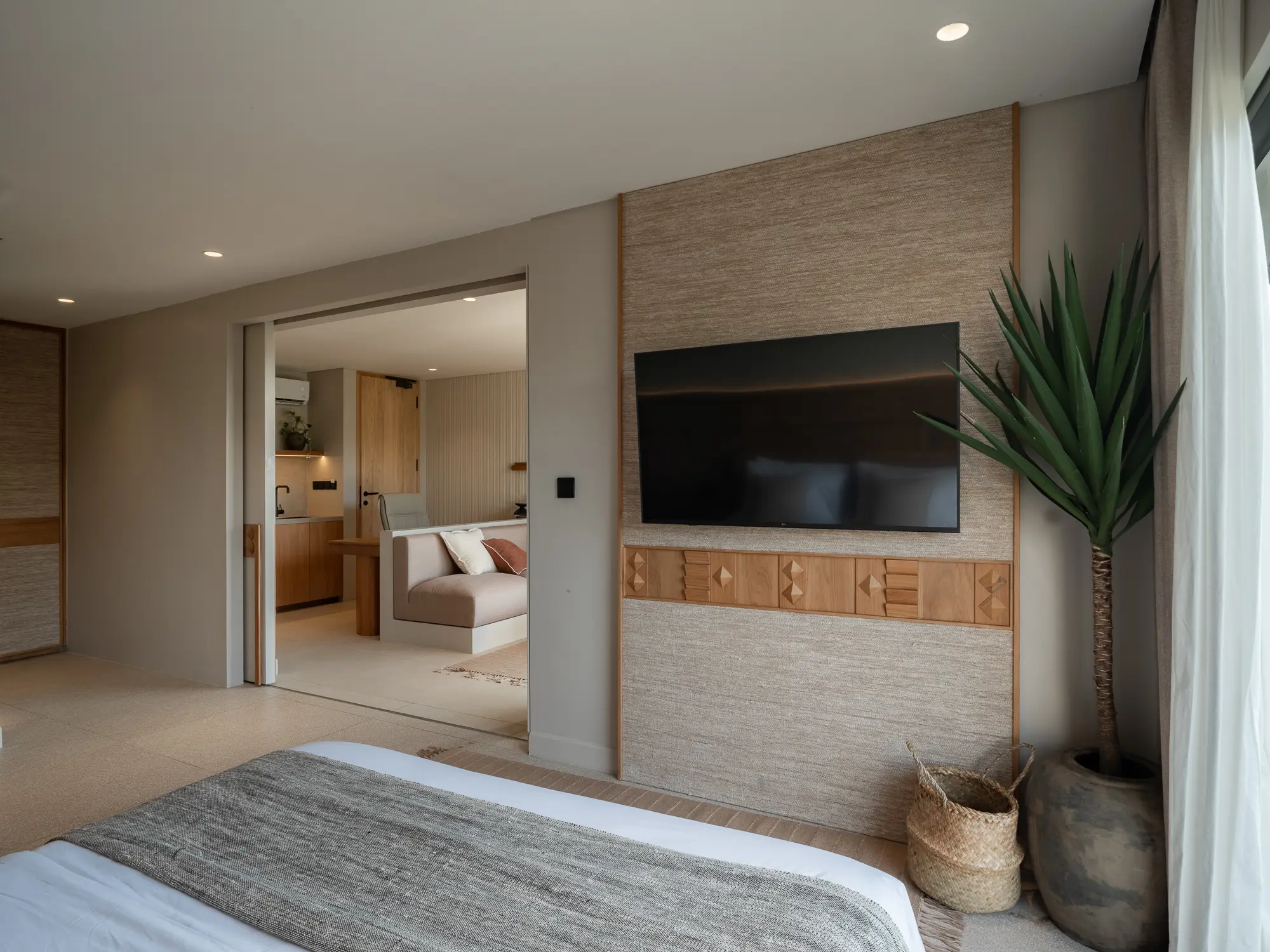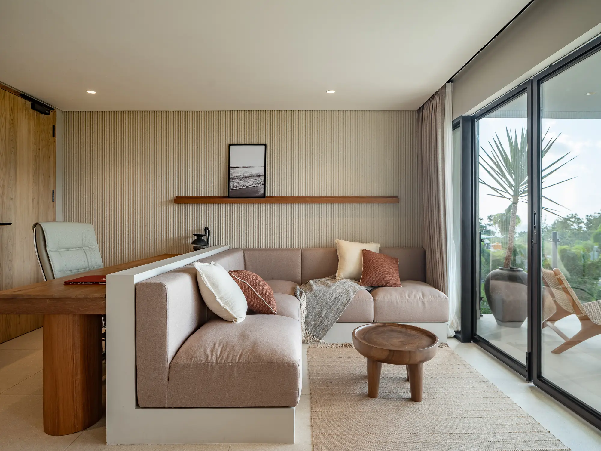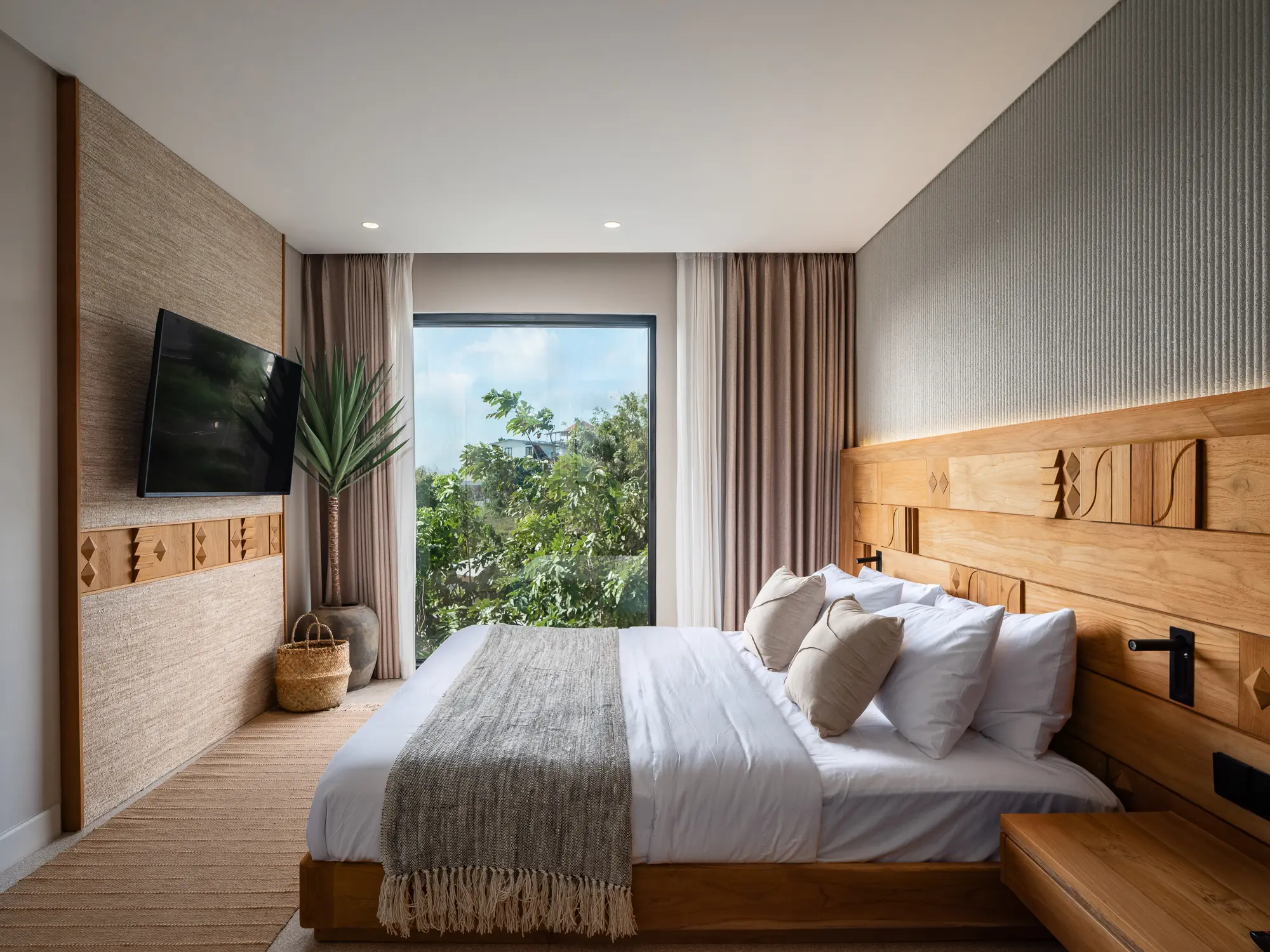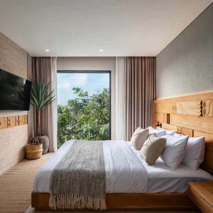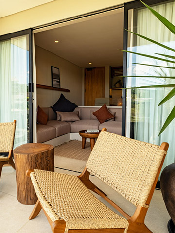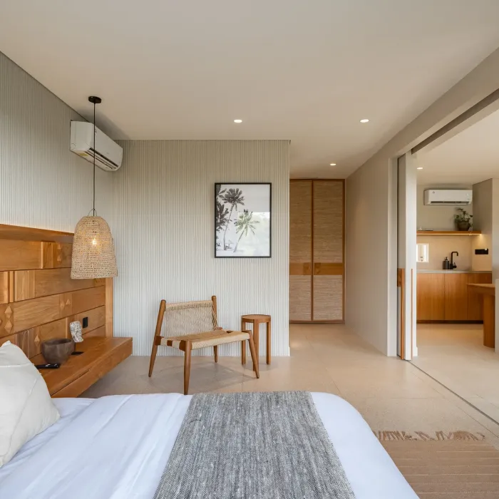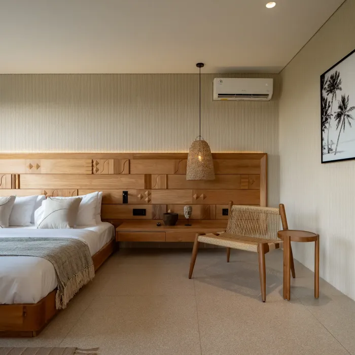 Each spacious room features a dedicated work station, perfect for digital nomads and business travelers who value both productivity and comfort. Open-air flow and natural textures enhance your living experience.